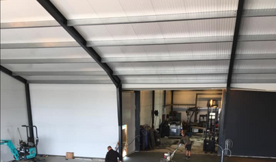 Denne 900 m² stor panelhal er bygget og designet til at imødekomme Bruuns Maskiner i Thise's behov for både opbevaring og drift.