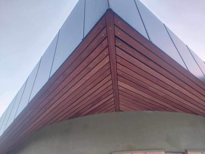 Underbeklædningen er udført i hårdttræs lister, som tilføjer et varmt og naturligt element til tagkonstruktionen. Hårdttræ er kendt for sin styrke og holdbarhed, hvilket gør det ideelt til udendørs brug. De smukt forarbejdede lister giver et eksklusivt og tidløst udseende, der komplementerer de øvrige materialer og skaber en harmonisk helhed.